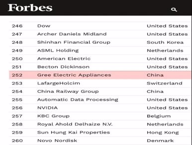 Gree Listed in Forbes Global 2000 Again